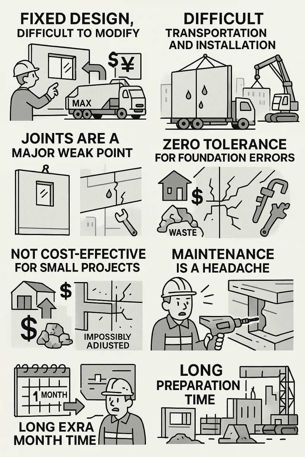 Tu sú niektoré bežné nevýhody prefabrikovaného betónu v praktických aplikáciách: